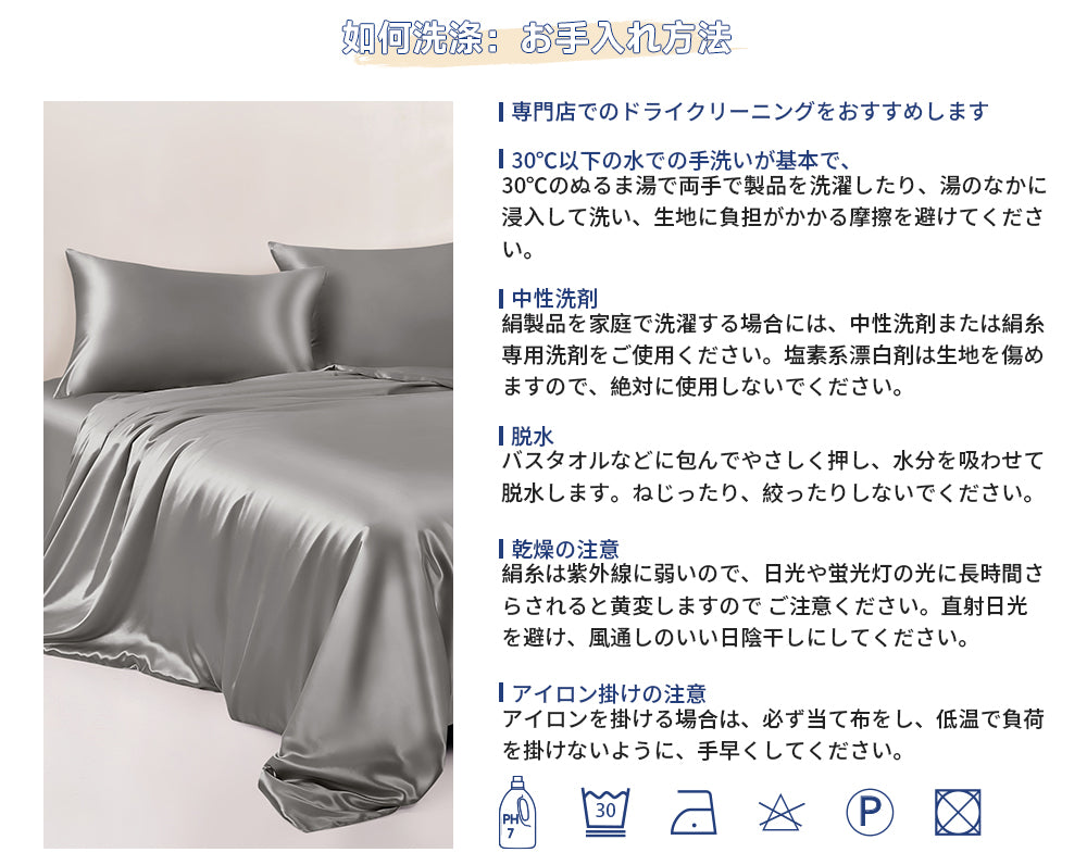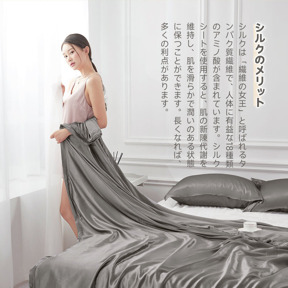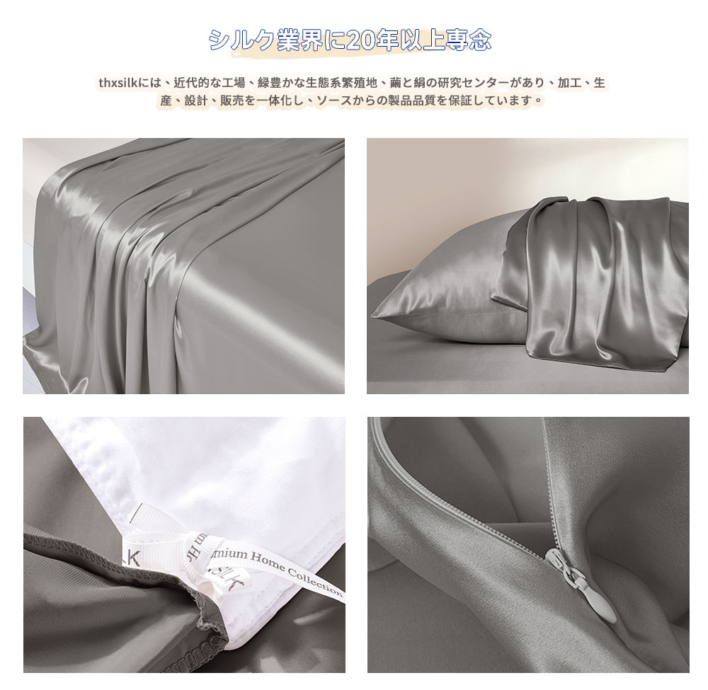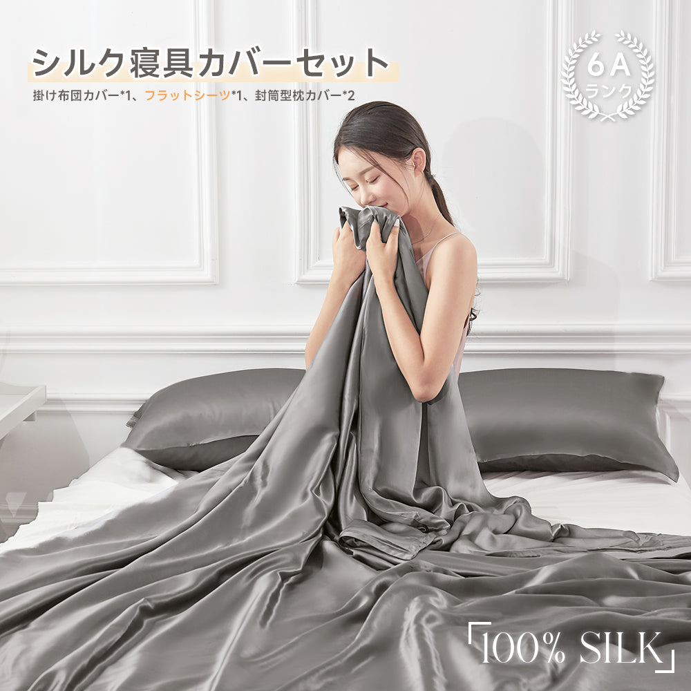 19匁 シルク寝具カバー4点セット「1点シルク掛け布団カバー&1点シルクフラットシーツ&2点封筒型シルク枕カバー」
