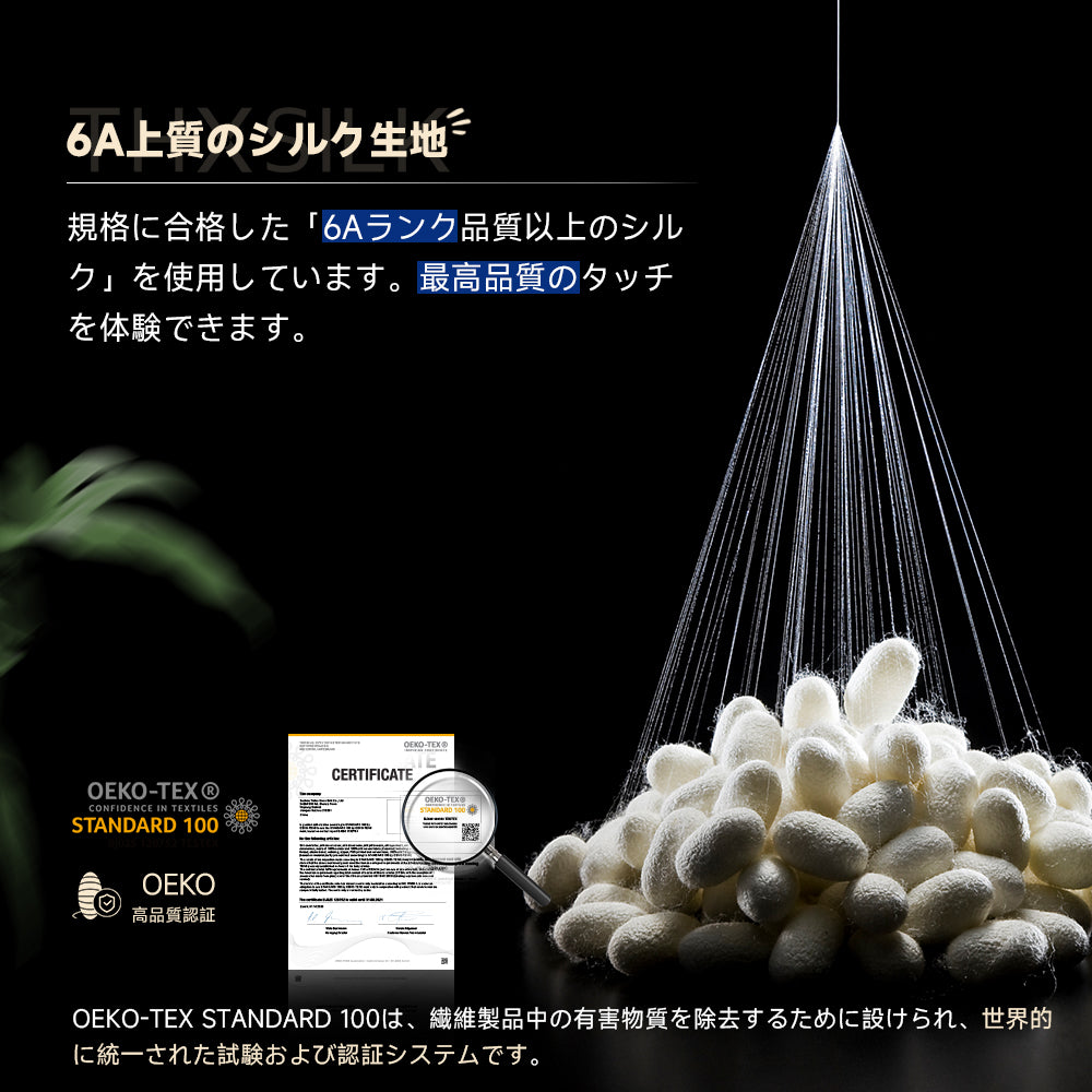 暑がり、寒がりの人に最適 : シルクの持つ天然の温度調節機能により、季節を問わず快適に過ごすことができます。体内の水分を吸い上げ、体温に合わせることで、睡眠時の暑さ・寒さのムラを効果的に軽減することができます。